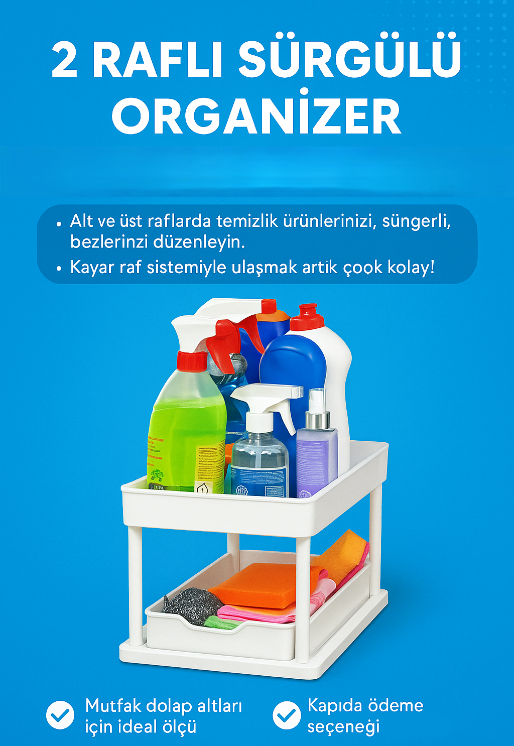 2 Adet ÇİFT RAFLI SÜRGÜLÜ ORGANİZER -